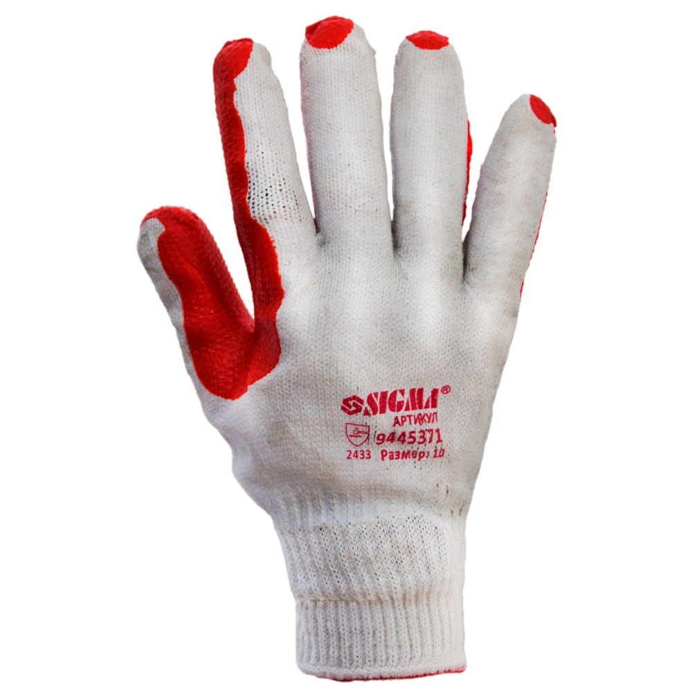 Рукавички скляра (манжет) SIGMA (9445371) – трикотажні з латексним покриттям для захисту рук від вологи і механічних впливів.